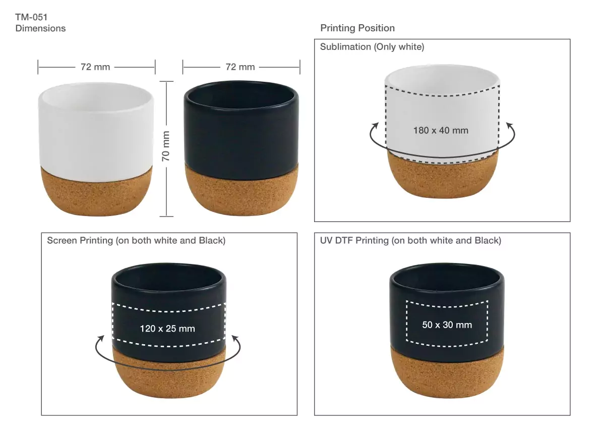 • Material: Ceramic and Cork | Capacity: 6 oz | Item Weight: 0.190 kg | Size: 72 x 72 x 70 mm