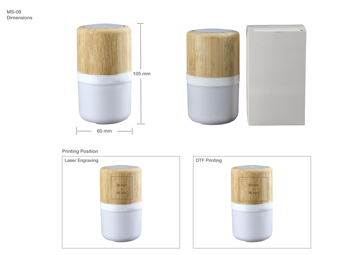 - Small speaker with a stylish and elegant design perfect for promotional gifts, corporate gifts, and event gifts.