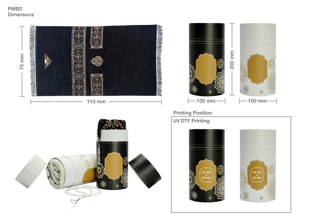 Prayer Mat with Tasbih in Round Tube Box