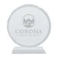 - Design: Elegant round clear crystal award with engraved leaf detailing