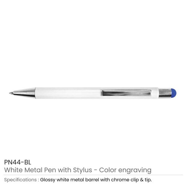 Stylus metal pens are stylish and elegant metal pens. They are created with a reliable metallic material. Thus, they are durable and long-lasting. This pen comprises a glossy white metallic barrel. Thus, it gives a shiny look. However, the tip is crafted with chrome material and has a silver metallic finish. Thus, the whole structure of the pen is glossy. Moreover, it’s a 2-in-1 pen. The stylus is present at the top of the pen. It is colorful and available in multiple colors. Thus, you can use it on your smartphone. Apart from the barrel, it also comprises a clip. The clip is also crafted from chrome material.  Thus, it’s a perfect promotional pen with a stylus.  Thus, you can also use this high-quality pen for business events.