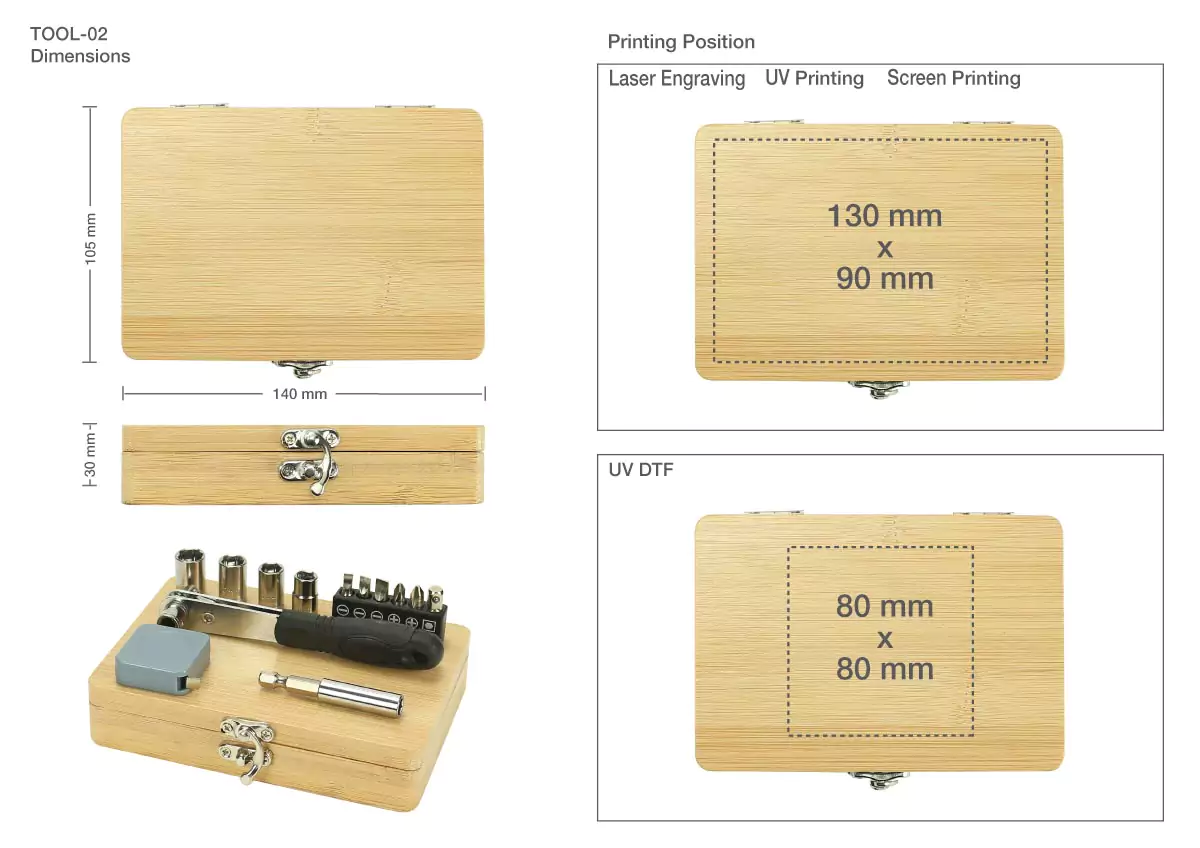 Tool Set Wooden Box Printing Options