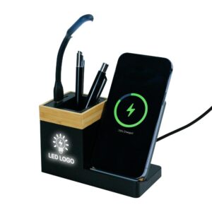 A wireless charger mouse pad is an excellent 2-in-1 structure. It’s an advanced technology version of a standard mouse pad. It comprises a mousepad with a standard USB cable and a built-in charging coil inside the mousepad where you can put smartphones or PC-mouse compatible with Qi-standard charging. The LED lights on the upper side of the charging area indicate the level of charging. We prepare non-slip mousepads, which are made of fabric. They don’t let your mouse slip and make it move smoothly. This SWAG item is black and possesses a good size of 263×203 mm.